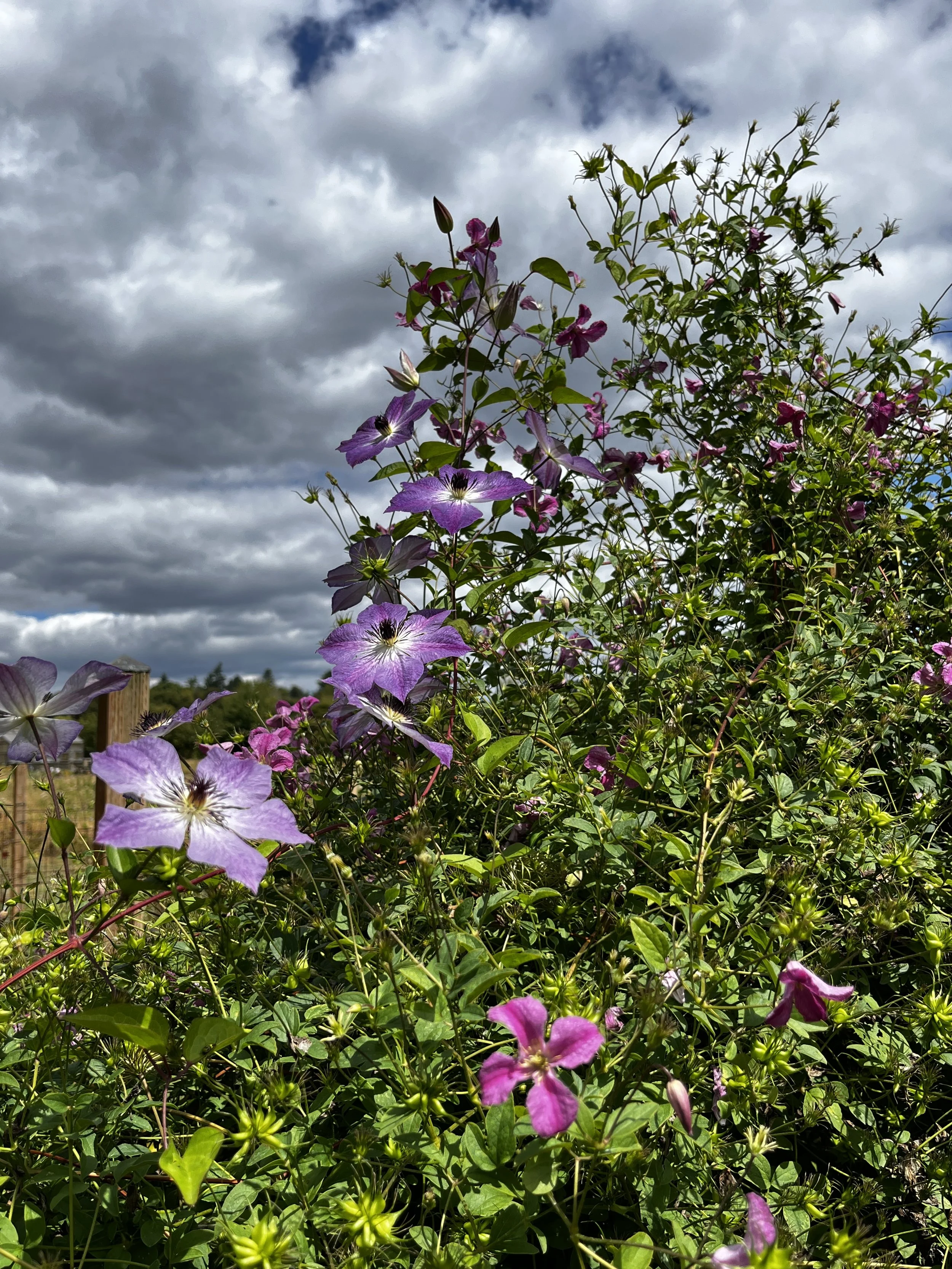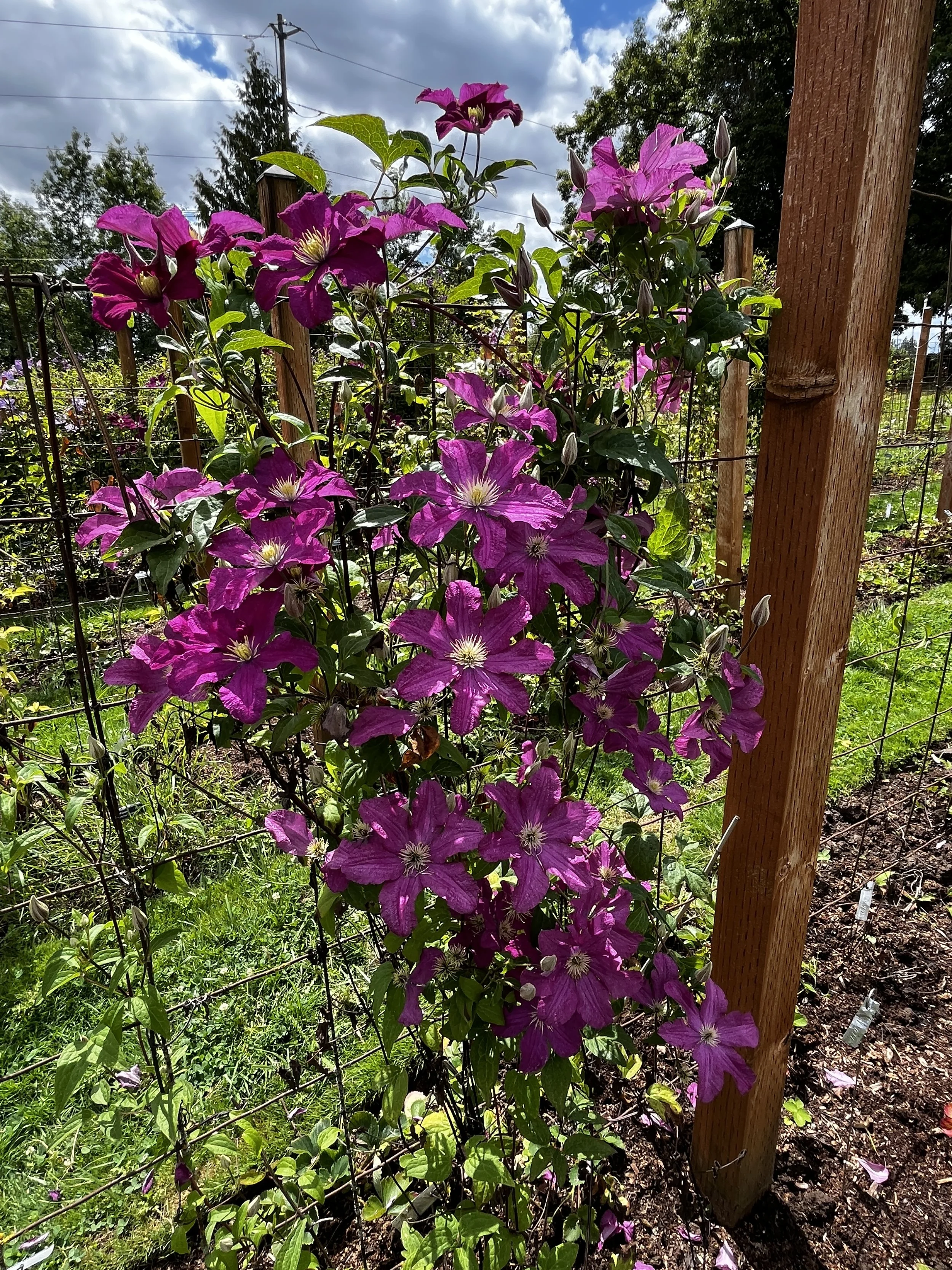 Updated August 11, 2025: We have 209 clematis in bloom, even though not long after peak bloom in early July, we begin cutting back clematis that had either begun a post-blooming pout, or were looking rather over-worked, like the herbaceous perennial clematis. Here we are in mid-August and those cut back in mid-July are already back in bloom.
