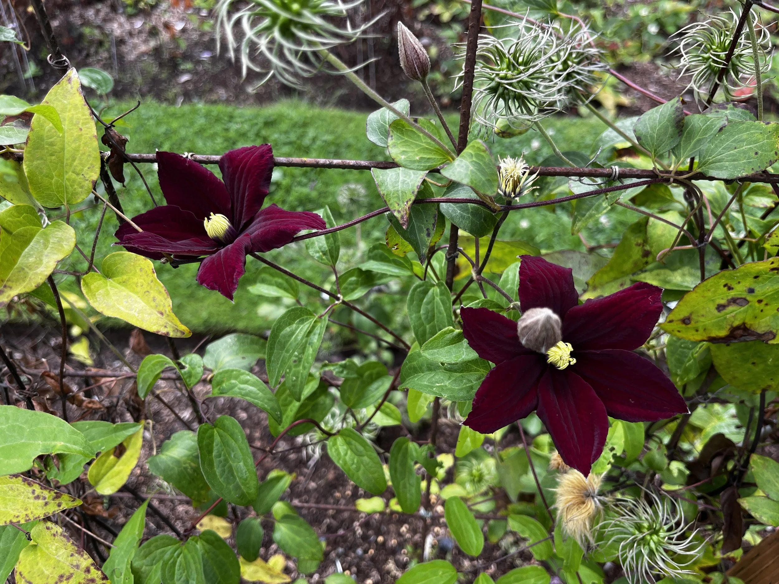 C. x diversifolia ‘Hendersonii’, C. viticella ‘Rubra’, x diversifolia ‘Eriostemon’